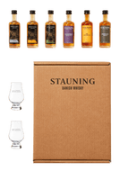 Desuden kommer hvert glas i en stilfuld æske med Stauning Whisky-logoet, der også gør den perfekt til at give som gave. Og som en sjov lille detalje, er der en QR-kode på æsken som leder dig til vores 'Kick Back Relax & Rye' Spotify playliste, som er udvalgt til at skabe lidt ekstra hygge.