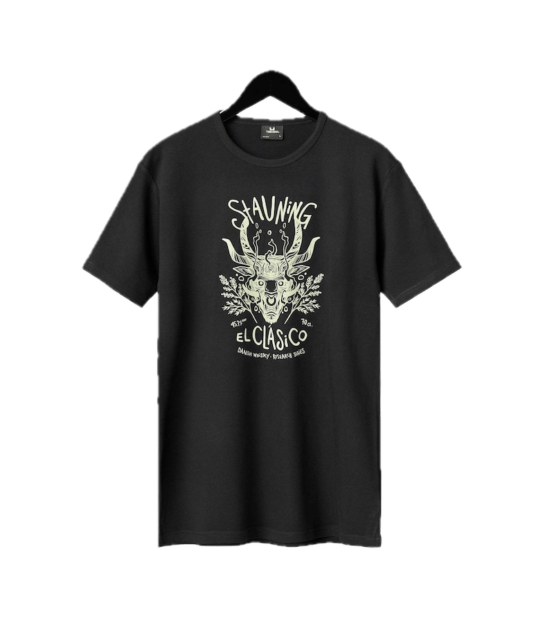 Show off your affinity for Stauning Whisky with our black unisex "El Clásico" t-shirt. Made from 100% cotton, it ensures utmost comfort for every whisky connoisseur. The bold "El Clásico" graphic, part of Stauning’s research series, celebrates the unique maturation process in Spanish vermouth casks, honoring the exceptional distillery traditions of Denmark.